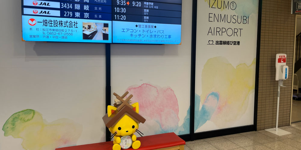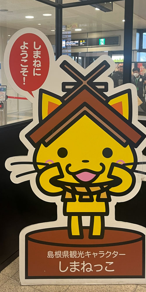 なお出雲縁結び空港に降り立つと島根県観光キャラクターである「しまねっこ」が大いに歓迎してくれます。